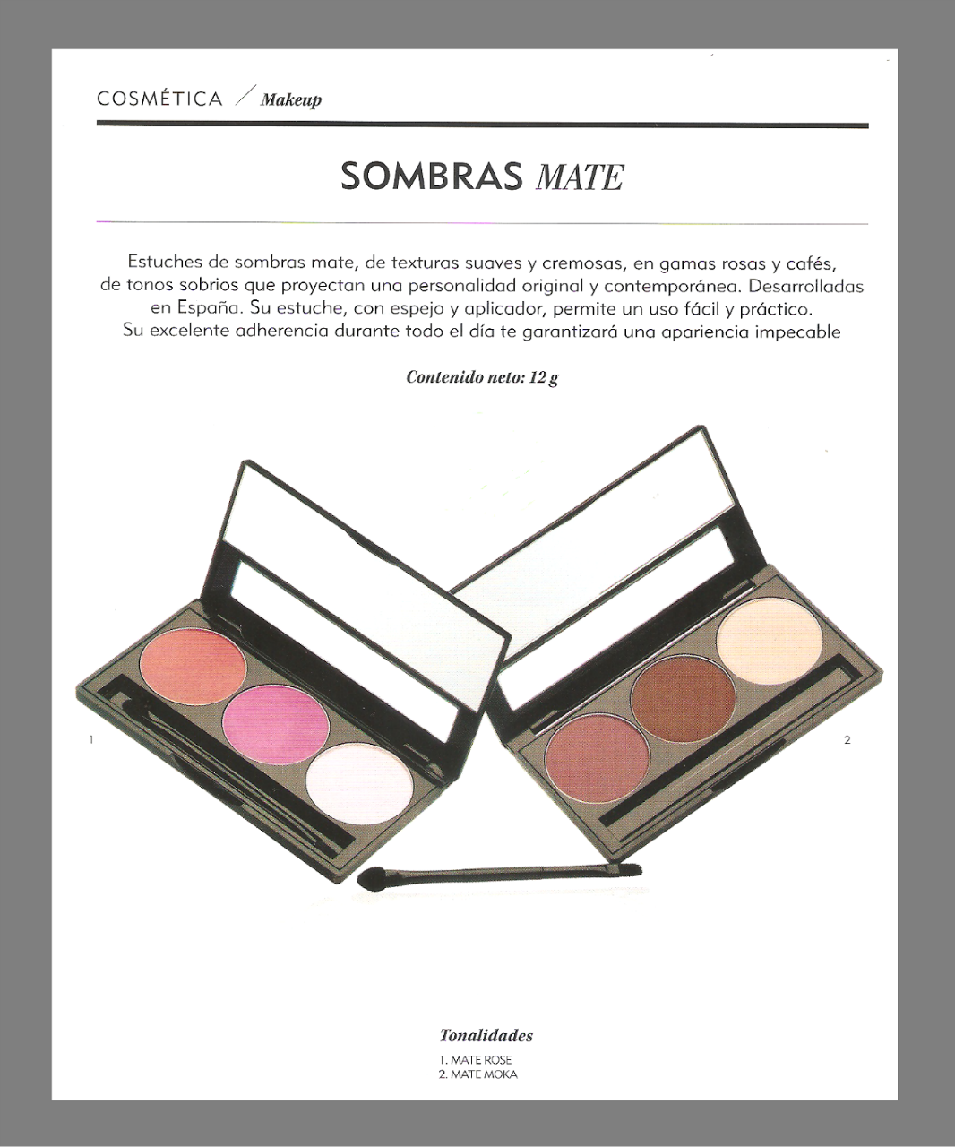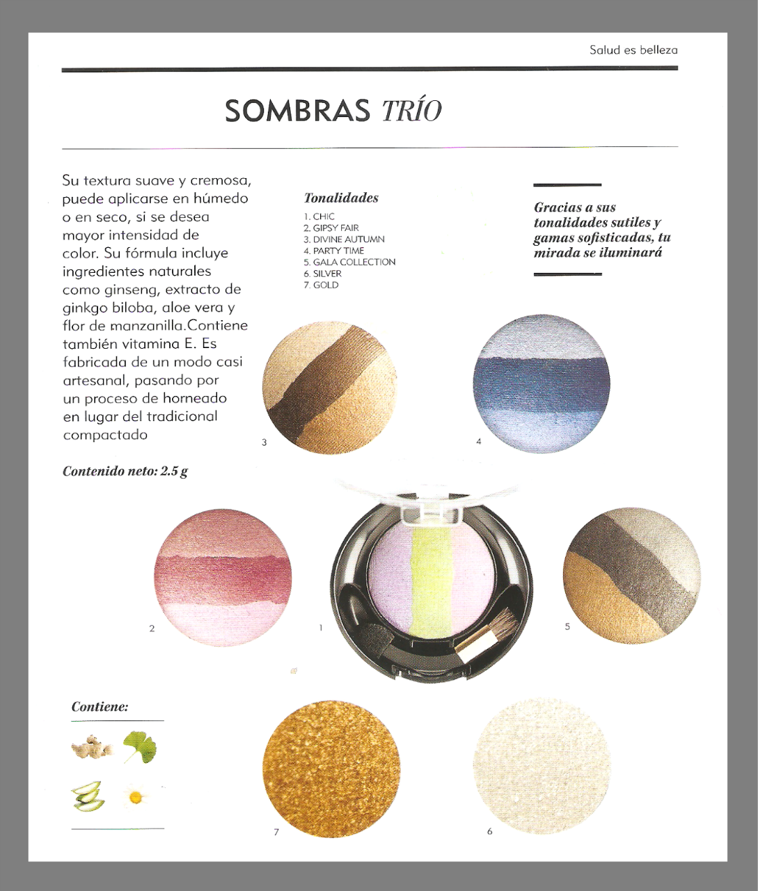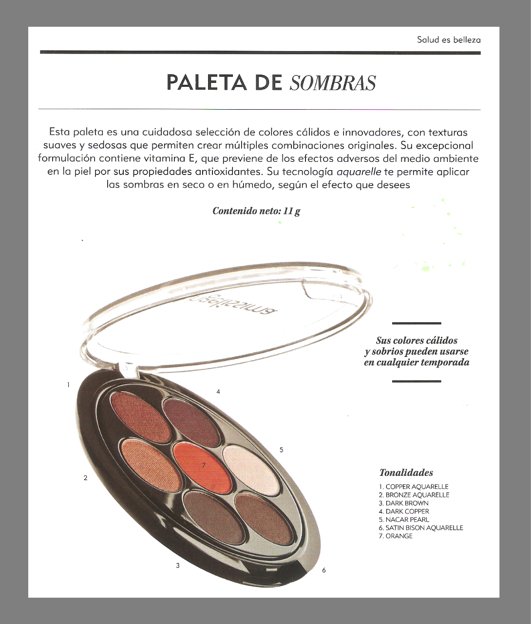 Questa nuova gamma di colori sette ombre è una attenta selezione di texture morbida e setosa che consentono di creare combinazioni uniche. Un concetto di ombre con colori caldi che sono state fatte in Spagna e sviluppato da esperti nel settore cosmetico. La sua esclusiva formulazione contiene vitamina E, un antiossidante per eccellenza che lavora per prevenire gli effetti negativi dell'ambiente sulla pelle e zinco, un minerale riconosciuta nei cosmetici internazionale grazie alle sue proprietà di scorrimento.