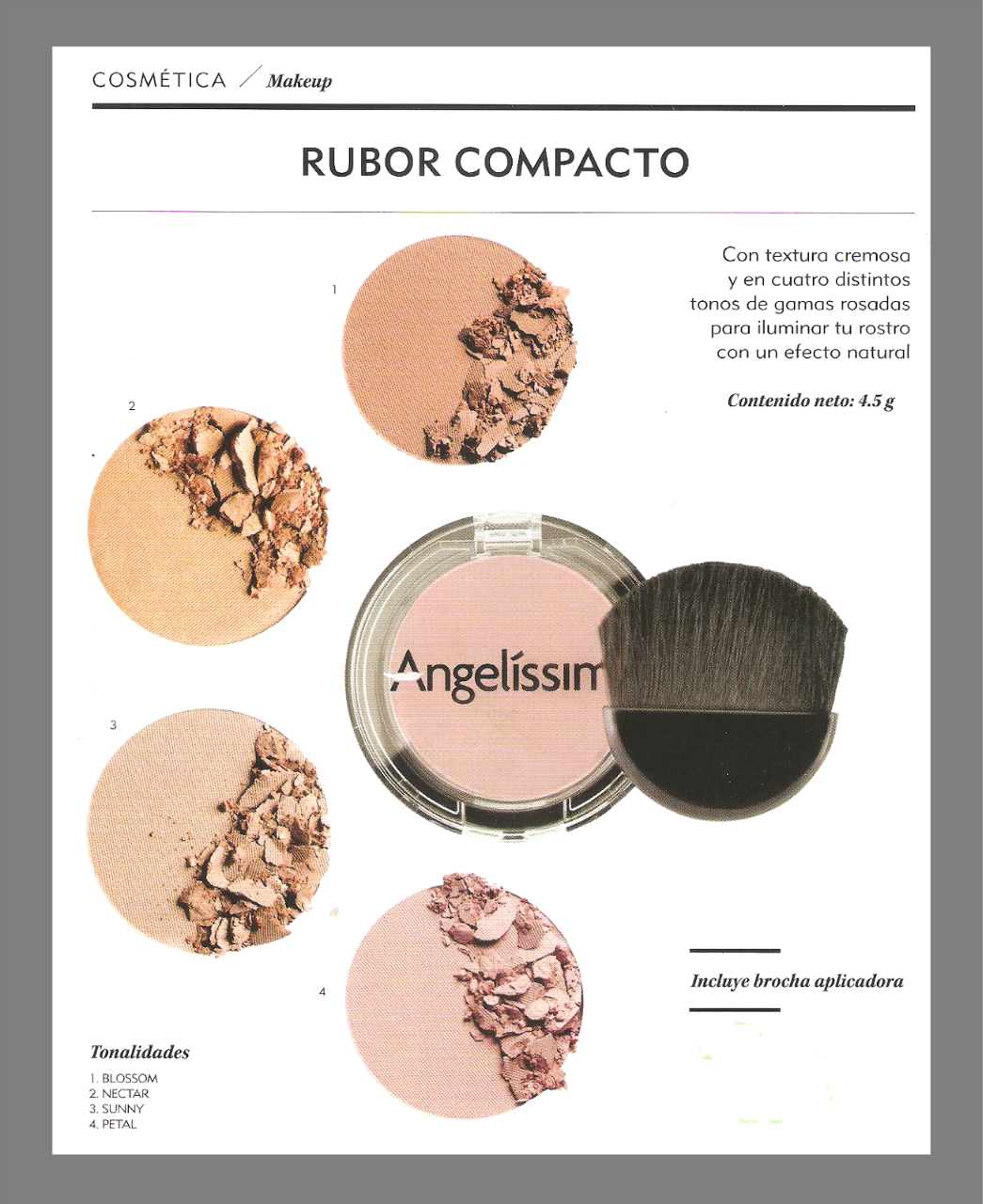 Il blush compatto è per tutti i tipi di pelle, in quanto contribuisce a definire i tratti del viso e fornisce il colore, lasciando una luce, consistenza morbida.